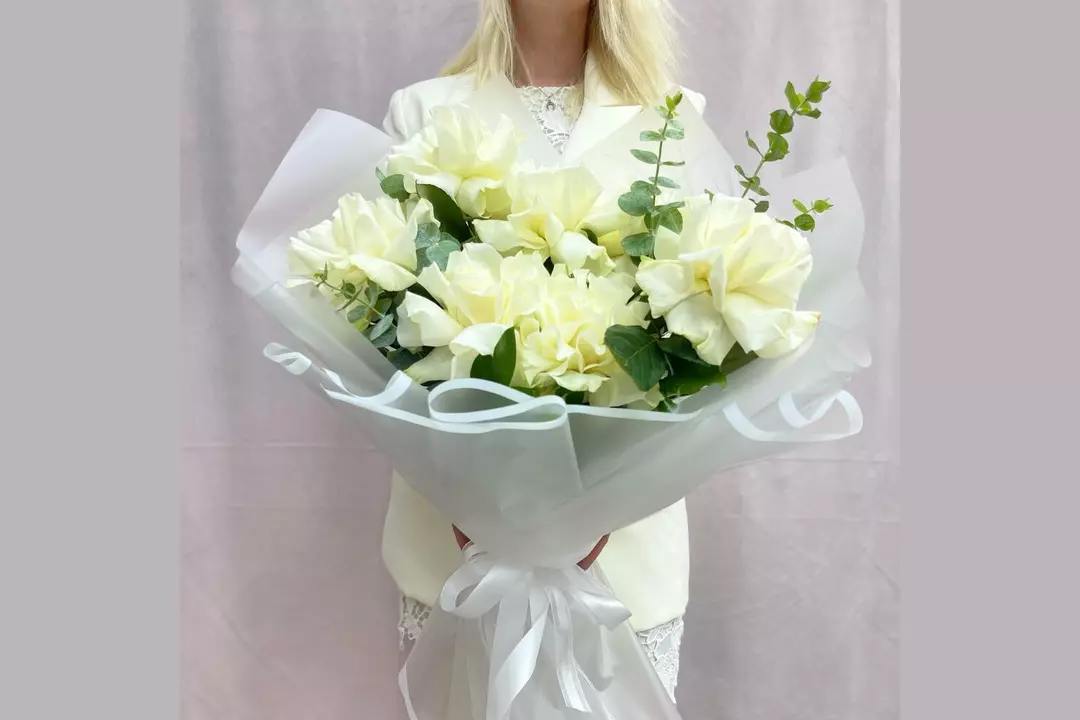 Белая французская роза в воздушной упаковке FMART by flowwow