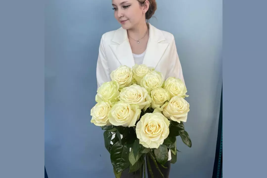 Белые высокие розы FMART by flowwow