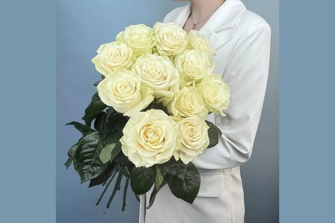 Исторически белый цвет символизировал невинность и честь, поэтому белая роза стала традиционным цветком для невест,девушек. Также это традиционный выбор для украшения церемоний, религиозных обрядов венчаний. В романтическом смысле белая роза символизирует безусловную любовь. Крупные, высокие Эквадорские розы белого цвета. Высокий стебель, крупный бутон. Розам необходимо много воды - для хорошей стойкости подрезать стебли наискосок острым ножом и поставить в глубокую вазу (воды должно быть не менее 2/3 от высоты стебля)