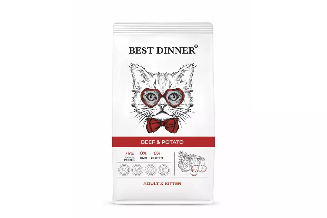 BEST DINNER Adult&Kitten Beef&Potato Корм сух.говядина/картофель д/котят и кошек 1,5кг / Супермаркет