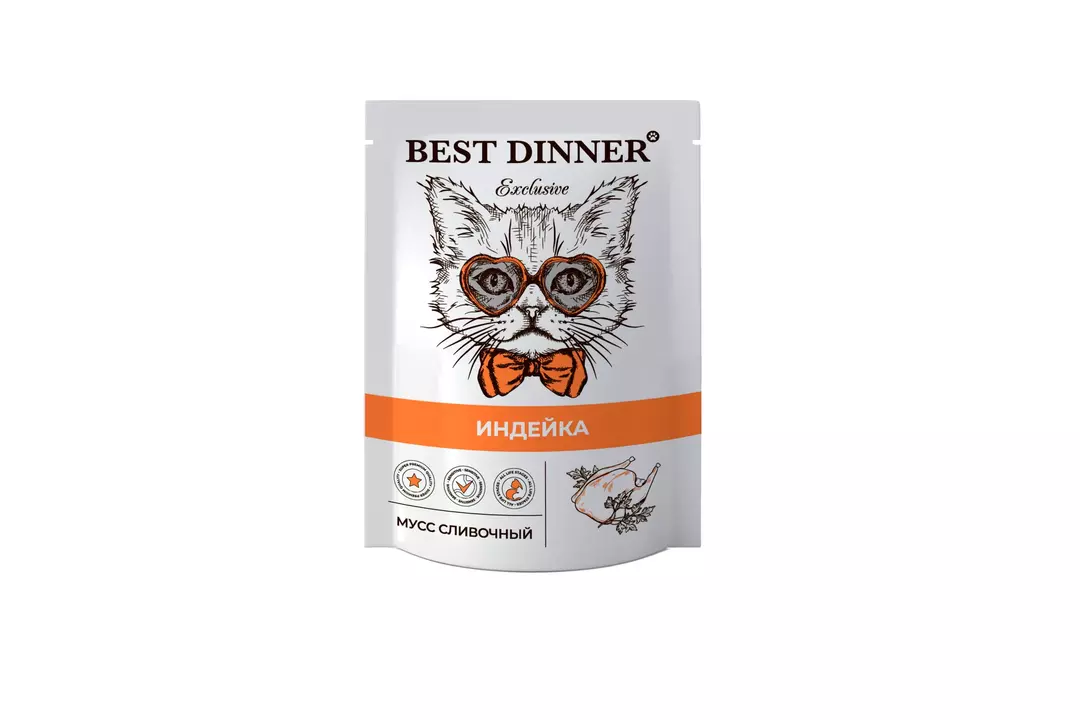 BEST DINNER Exclusive Корм влаж.индейка мусс сливочный д/кошек пауч 85г / Супермаркет