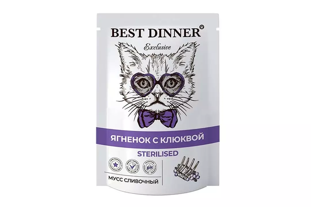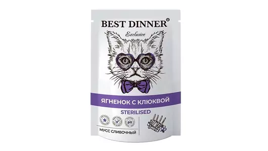 BEST DINNER Exclusive Sterilised Корм влаж.ягненок с клюквой мусс сливочный д/стерил.кошек пауч 85г / Супермаркет