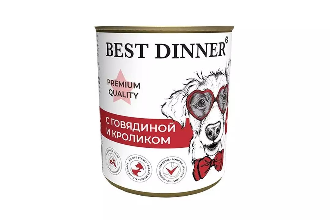 BEST DINNER Premium Quality Меню№3 Корм влаж.говядина и кролик д/собак конс.340г / Супермаркет