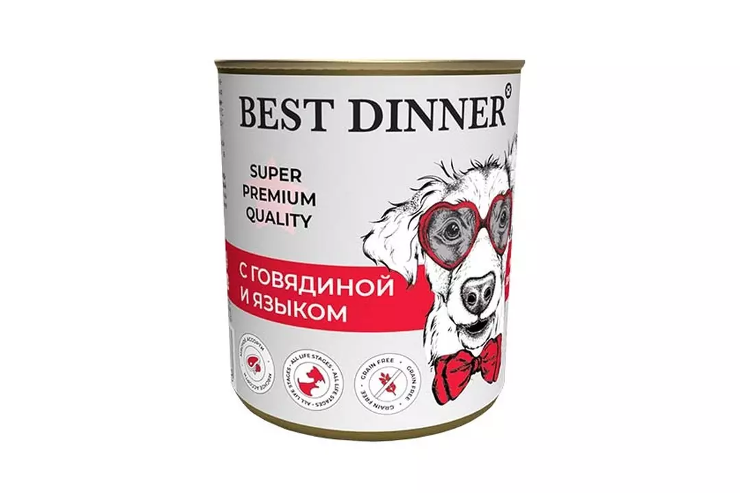 BEST DINNER Super Premium Корм влаж.говядина с языком д/собак конс.340г / Супермаркет