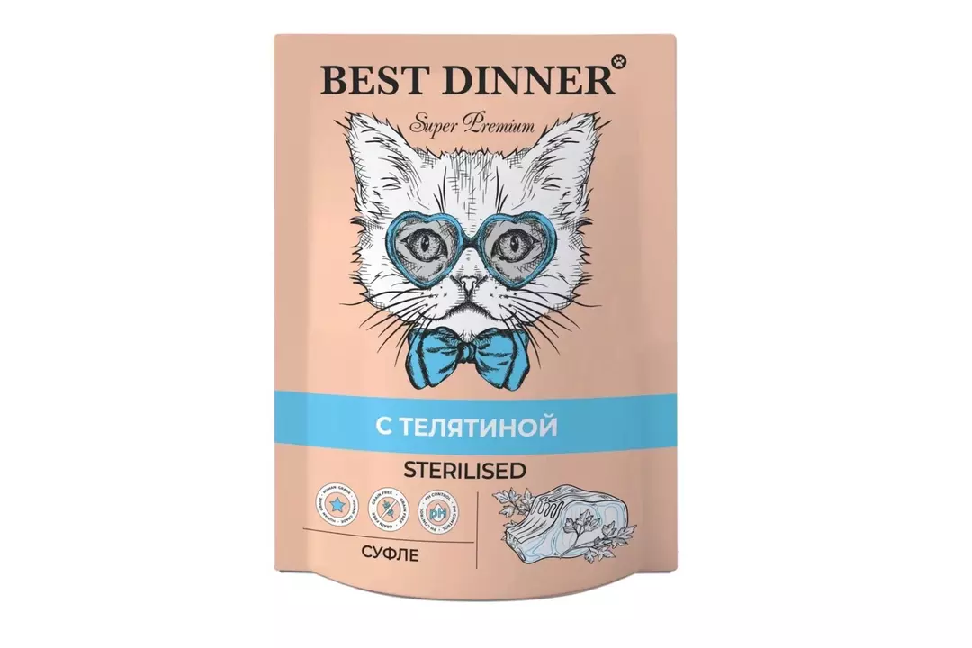 BEST DINNER Super Premium Sterilised Корм влаж.телятина суфле д/стерилизов.кошек пауч 85г / Супермаркет