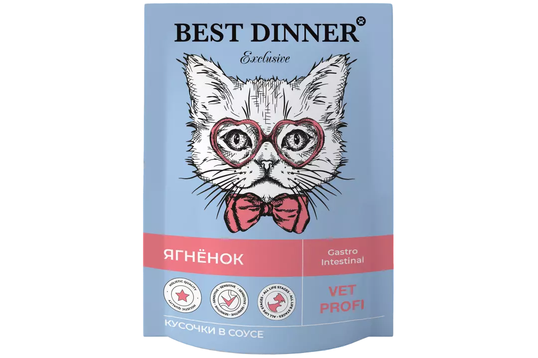 BEST DINNER Vet Profi Exclusive Gastro Intestinal Корм влаж.ягненок кусочки в соусе д/кошек пауч 85г / Супермаркет