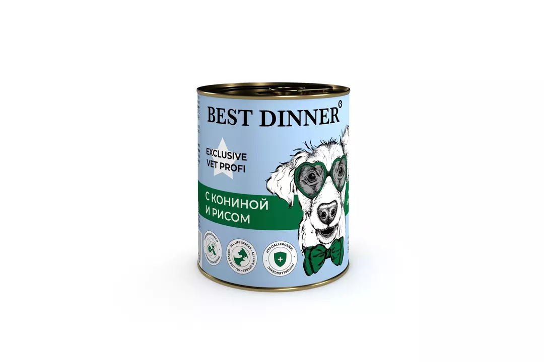BEST DINNER Vet Profi Exclusive Hypoallergenic Корм влаж.конина с рисом д/собак конс.340г / Супермаркет