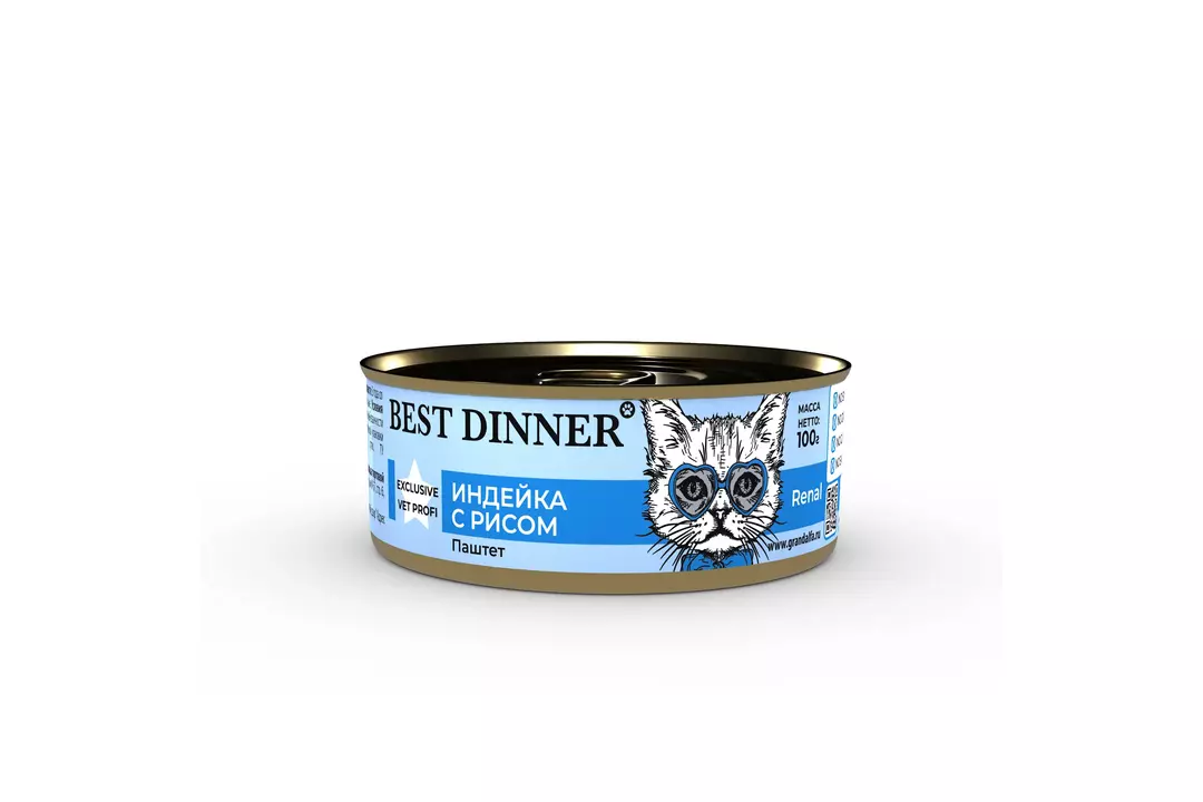 BEST DINNER Vet Profi Exclusive Renal Корм влаж.индейка с рисом д/кошек конс.100г / Супермаркет
