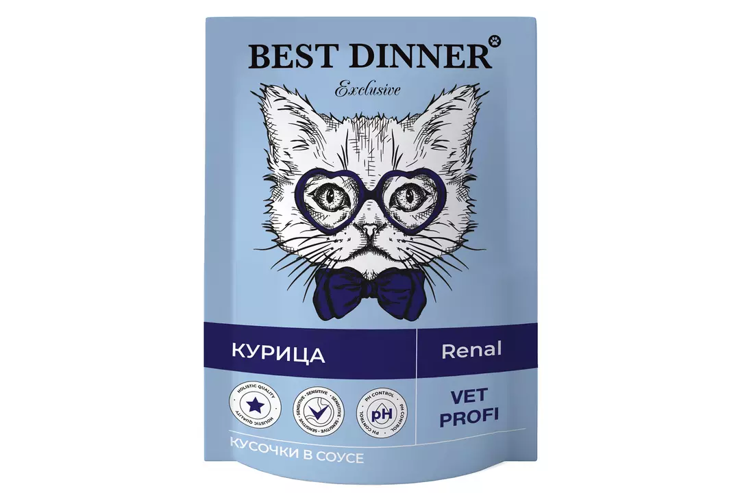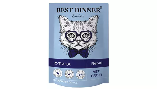 BEST DINNER Vet Profi Exclusive Renal Корм влаж.курица кусочки в соусе д/кошек пауч 85г / Супермаркет