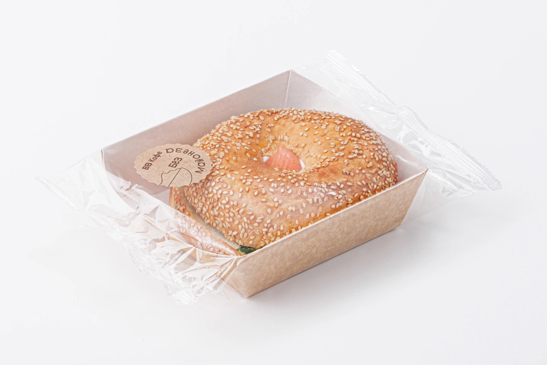 Пышный «бублик», начинённый слабосолёным лососем, нежным творожным сыром, сочными огурчиками и айсбергом. Сытный завтрак, который к тому же удобно захватить с собой, если не успели перекусить дома. Товар доступен с доставкой и в магазинах с зоной кафе.