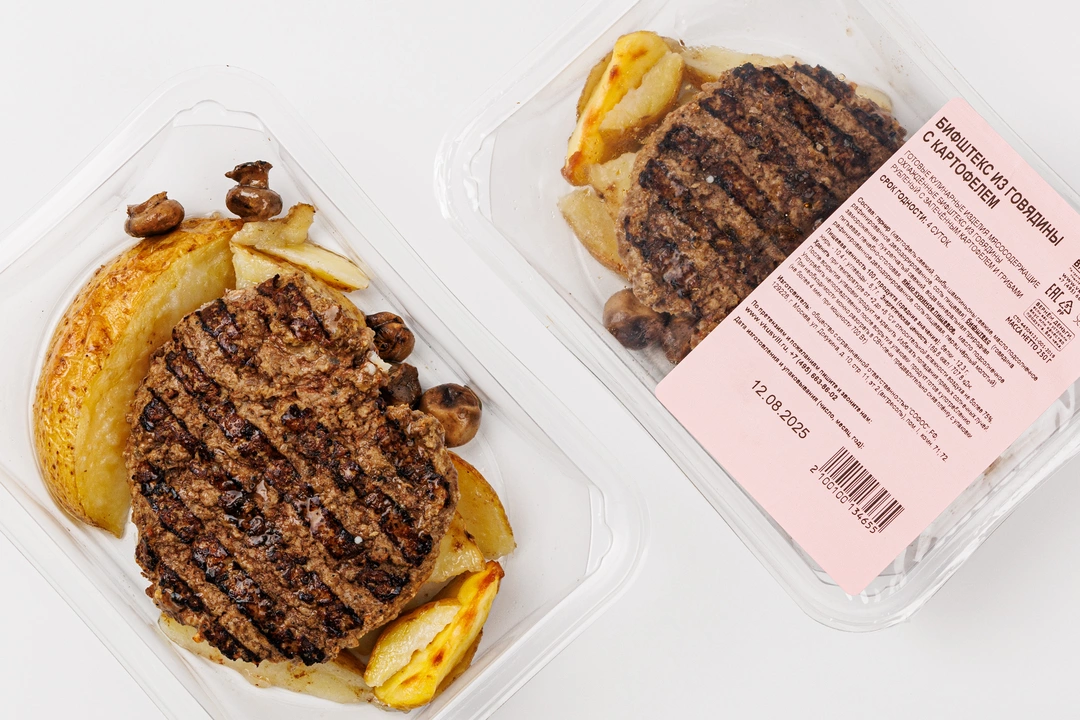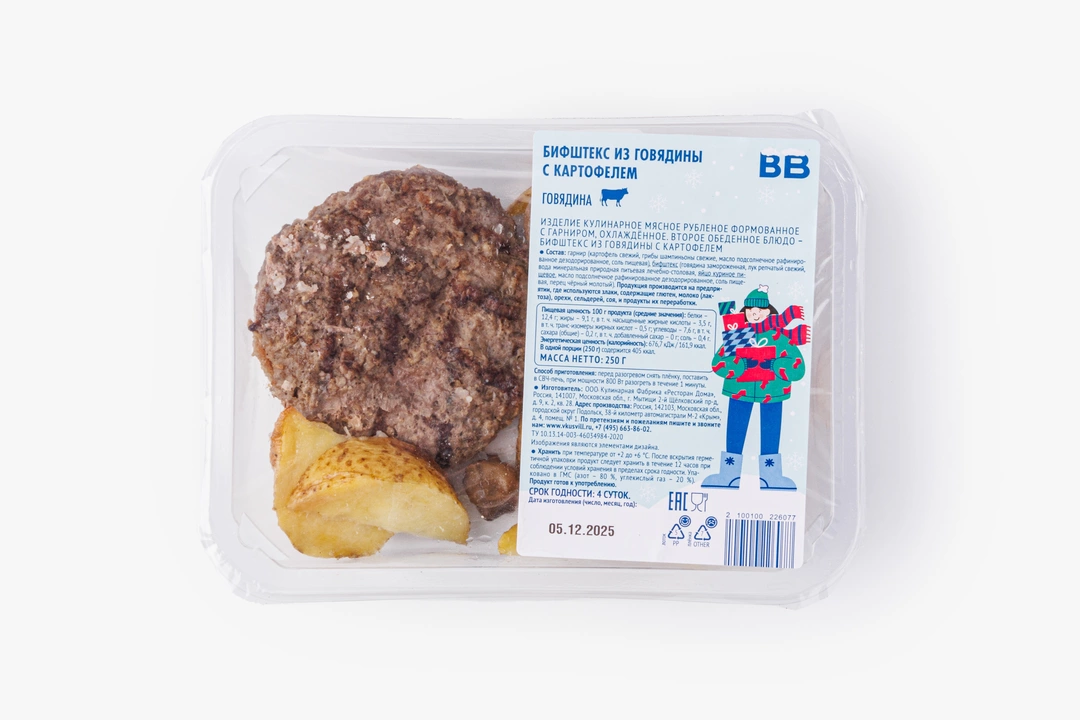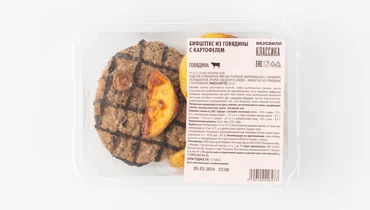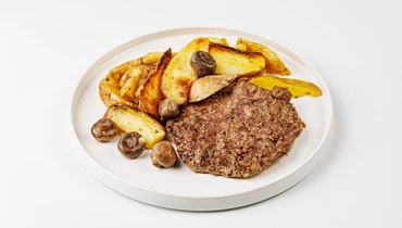 Подрумяненная на гриле говядина, дополненная гарниром из картофеля в мундире с шампиньонами. Полноценное блюдо, которое насытит на несколько часов. Рекомендуем оценить продукт в сочетании с соусом «барбекю».