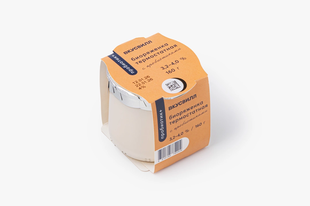 Биоряженка с мягким кисломолочным вкусом отличается особенно густой и плотной текстурой. Готовится термостатным способом из цельного молока, поэтому получается однородной и насыщенной. Вкус нежный, с лёгкой сливочной теплотой и характерными нотами ряженки. Обогащена пробиотическими культурами, которые способствуют улучшению пищеварения. Подходит для ежедневного употребления — как перекус или часть сбалансированного завтрака. Массовая доля жира от 3,2 до 4,0%.