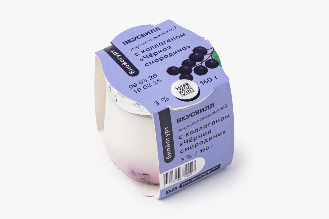 Термостатный биойогурт с коллагеном обладает насыщенным ягодным вкусом и нежной текстурой. Чёрная смородина даёт яркую кислинку. За счёт термостатного способа сквашивания йогурт получается густым, однородным, без лишней жидкости. Такой способ приготовления сохраняет живые культуры. Также добавили в йогурт гидролизованный коллаген — он способствует здоровью кожи, волос, ногтей и суставов, а пробиотики в составе благотворно влияют на пищеварение. Подходит для завтрака или перекуса, когда хочется более плотного и насыщенного молочного продукта. Массовая доля жира 3%
