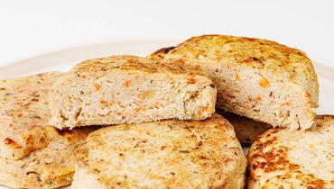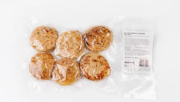 Питательные биточки приготовлены из филе куриного бедра, без соевого белка и усилителей вкуса. Добавили в них запечённые картофель и морковь, чтобы сделать вкус насыщеннее, а блюдо – сытнее. Черный перец, лук и чеснок добавляют лёгкую пряность, а сушёная петрушка подчеркивает свежесть и полноту вкуса. Уже готовы, надо только разморозить и подогреть в духовке или микроволновой печи.