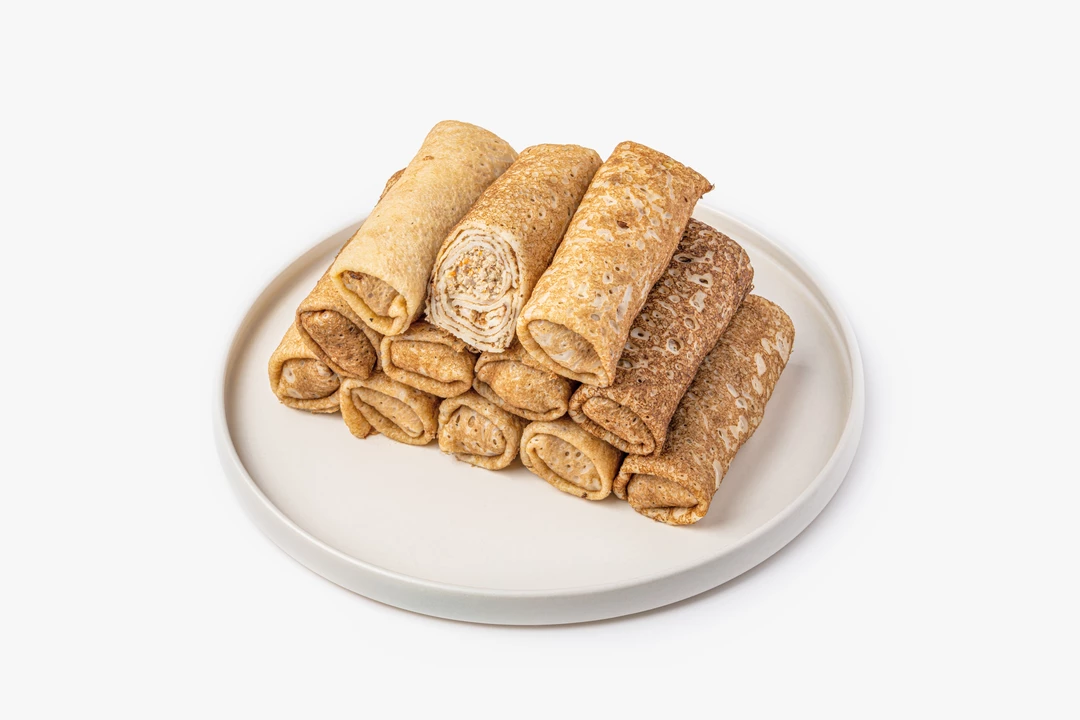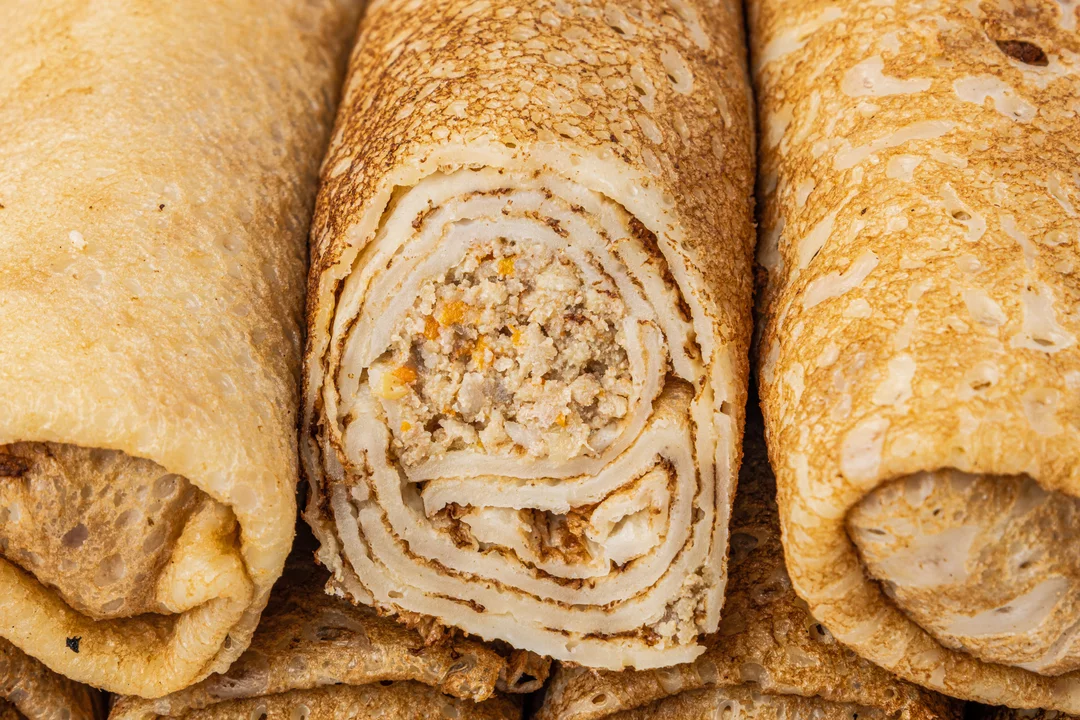 Домашнее блюдо с начинкой из говяжьего и свиного фарша высокого качества. Из мяса удаляются жилки и хрящики, поэтому блинчики придутся по вкусу даже детям. Быстрый и сытный вариант для завтрака, который может храниться в вашем морозильнике целых полгода! Перед подачей блины достаточно разморозить в микроволновке или на сковороде в течение нескольких минут.