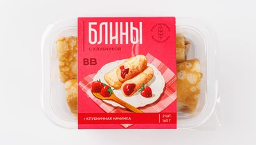 Ажурные блины на молоке, начинённые сладкой клубникой. Отлично подойдут для завтрака и чаепития! В упаковке — 2 аппетитных блинчика.