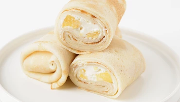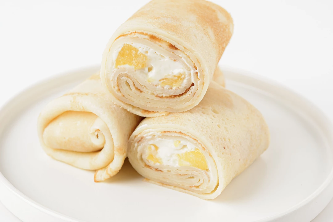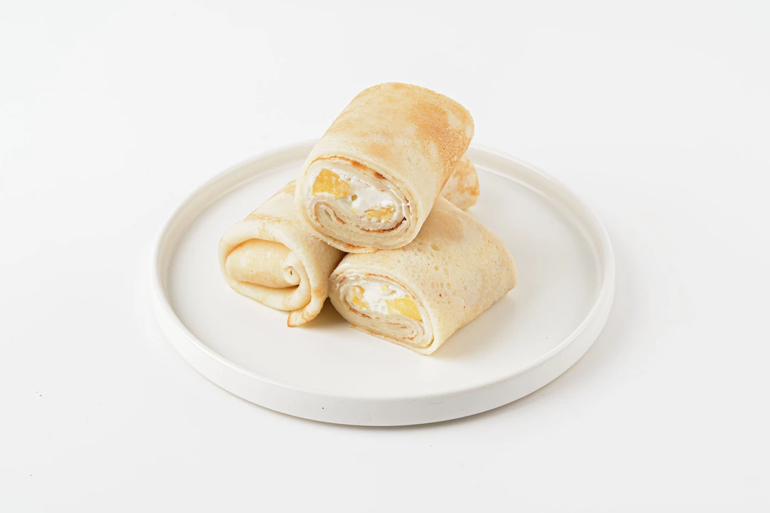 Тонкие блинчики с нежной начинкой из сливочного сыра и сочных кусочков персика. Вкус получается мягким и сбалансированным: сладость фруктов подчёркивает лёгкая сливочность, а сами блины делают его более сытным и уютным. Подойдут для завтрака или десерта — можно подогреть, чтобы сыр стал ещё более нежным, и подать со сметаной или сливками.