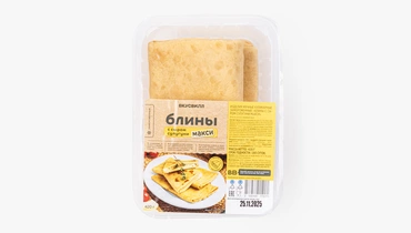 Три пышных блина размера XL. Испекли их такими крупными, чтобы вместить ещё больше начинки. Внутри — тягучий сыр сулугуни и ничего лишнего. Приготовили с заботой без вкусоароматических усилителей. А затем бережно заморозили, чтобы сытный завтрак или перекус всегда был у вас под рукой. Блинчики не нужно размораживать и можно разогреть любым способом: в микроволновке, духовке или на сковороде.