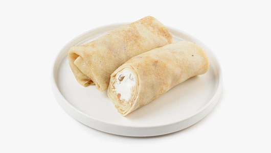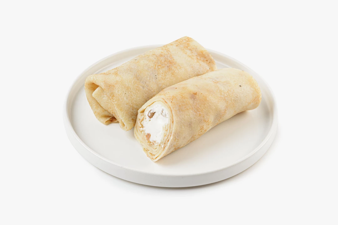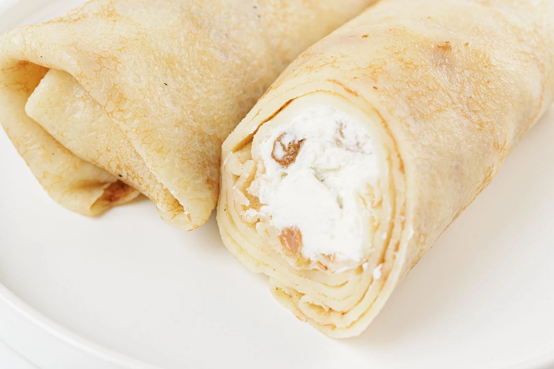 Ароматные блинчики из нежного молочного теста, щедро наполненные взбитым творогом. Чтобы добавить вкусу тёплой сладости, мы дополнили начинку крупными изюмом. Сытные и невероятно нежные, блинчики подойдут для любой подачи: в роли самоятельного завтрака, завершения плотного обеда или уютного домашнего десерта.