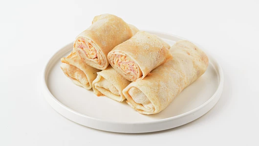 Тонкие блинчики с сытной начинкой из куриной ветчины и гауды. Мягкое и нежное тесто на молоке оттеняет солоноватый вкус мяса и сыра. Перед подачей на стол советуем слегка подогреть продукт в микроволновой печи, чтобы сыр чуть расплавился и стал тягучим и особенно вкусным. Это замечательное решение для быстрого завтрака или лёгкого ужина, когда нет времени на долгую готовку, но хочется побаловать себя и близких домашней едой.