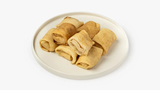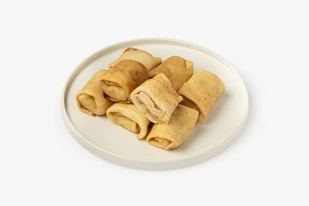 Мы испекли нежные блинчики и приготовили начинку из яблочного пюре с корицей, чтобы придать вкусу пряный оттенок и тёплые ноты. Разогрейте блины в микроволновой печи или на сковороде, чтобы они слегка подрумянились и стали ещё ароматнее. Их можно подать с шариком ванильного мороженого, взбитыми сливками или просто присыпать сахарной пудрой. Это вкусное и сытное блюдо для домашних завтраков и полдников никого не оставит равнодушным.