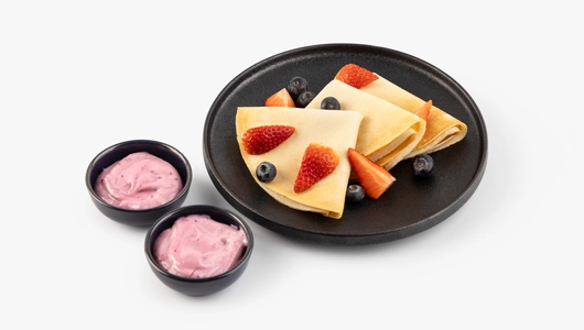 Блин простой, да не без хитрости. Румяный и нежный, он ждёт, когда его коснётся чудо сладкое — соус необыкновенный, что объединил нежную сладость сгущённого молока с яркой кислинкой брусники. Это ли не песня весны? Окунёшь блин в соус, и будто отправишься в сказочный лес, где ягод задор да молочные реки.