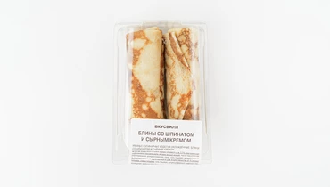Лёгкие блинчики с начинкой из шпината и сливочного сыра. Мы испекли их на молоке, чтобы они получились нежными, с едва заметной сладостью. Смешали рубленый шпинат с сырным кремом на сливках и аккуратно завернули в тонкое тесто. Подогрейте блинчики в микроволновой печи или на сковороде и подавайте с овощным салатом, любимым соусом или на десерт к травяному чаю. Продукт не содержит искусственных ароматизаторов.