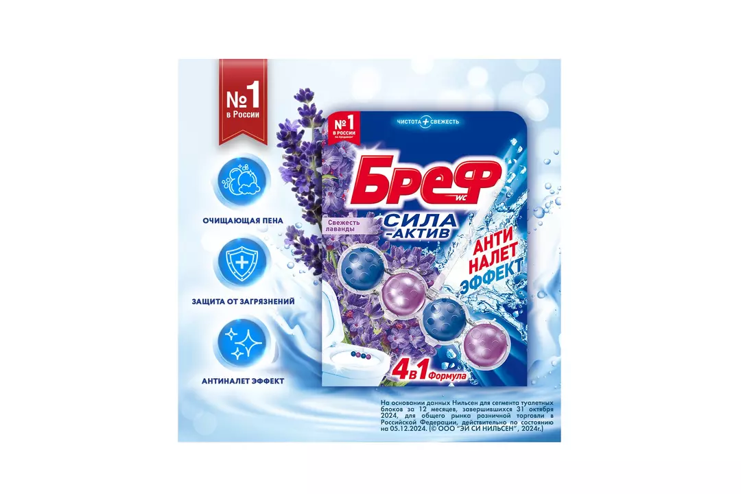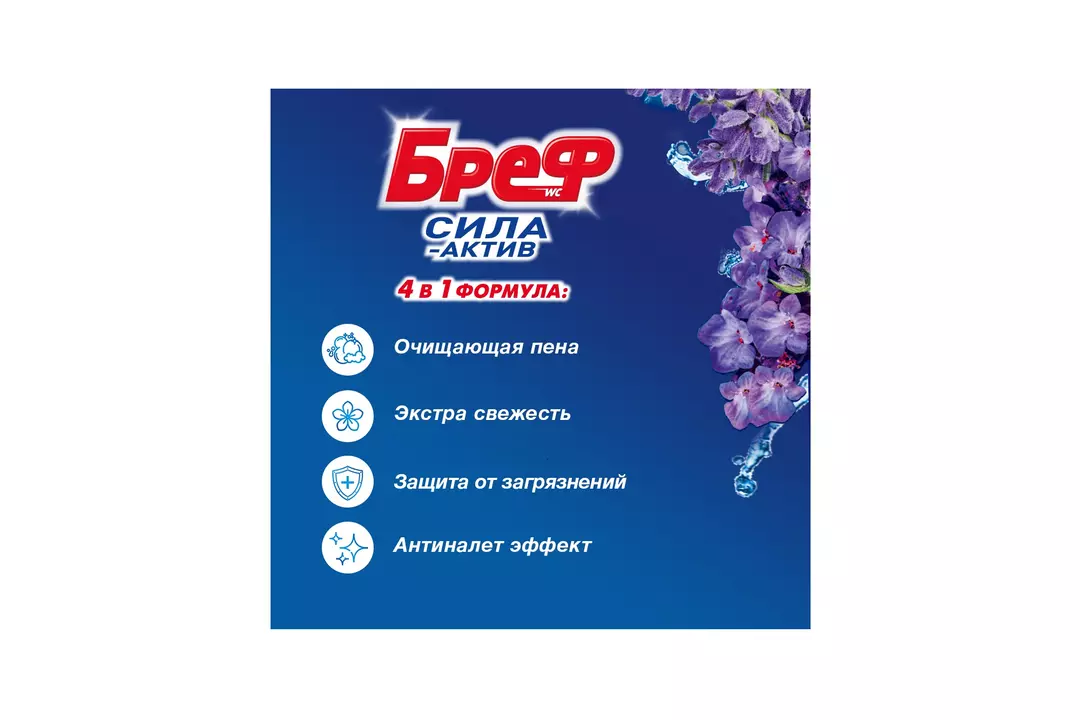 Блок для унитаза гигиенический Бреф Сила-Актив Свежесть Лаванды 50 г / Супермаркет