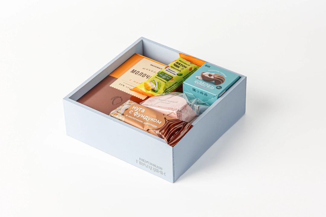 Торжественно заявляем: необязательно дожидаться праздников, чтобы побаловать себя или близкого десертным ассорти. В боксе мы собрали пять видов шоколада, нежную нугу и гурманский ореховый батончик. Проверено: вкус этих лакомств запоминается надолго! Набор станет универсальным подарком для любого получателя, ведь редко кто не любит побаловать себя сладким. Стильный деревянный ящичек будет радовать своего обладателя даже после того, как сладости закончатся. Ведь яркая коробочка прекрасно впишется в кухонный интерьер и пригодится для хранения продуктов, специй и памятных мелочей. В наборе вас ждут: Шоколад ремесленный горький 74% , Шоколад молочный с манго, Шоколад молочный, 165 г, Шоколад горячий Бомбочка с маршмеллоу, Батончик ореховый «Арахис-фисташка», Нуга с фундуком в молочном шоколаде, Шоколад белый «Гречишный», 25 г, Бокс мини подарочный белый. Состав набора может незначительно меняться в зависимости от наличия в магазине.