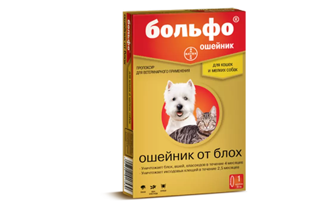 Больфо ошейник от блох и клещей для кошек и мелких собак 38см (Байер) купить с бесплатной доставкой на дом всего за 2 часа из ВкусВилла. Также можно оформить онлайн-заявку на самовывоз и забрать собранный заказ через 30 минут. Цены, отзывы о товарах от наших покупателей, действующие акции на официальном сайте ВкусВилл.