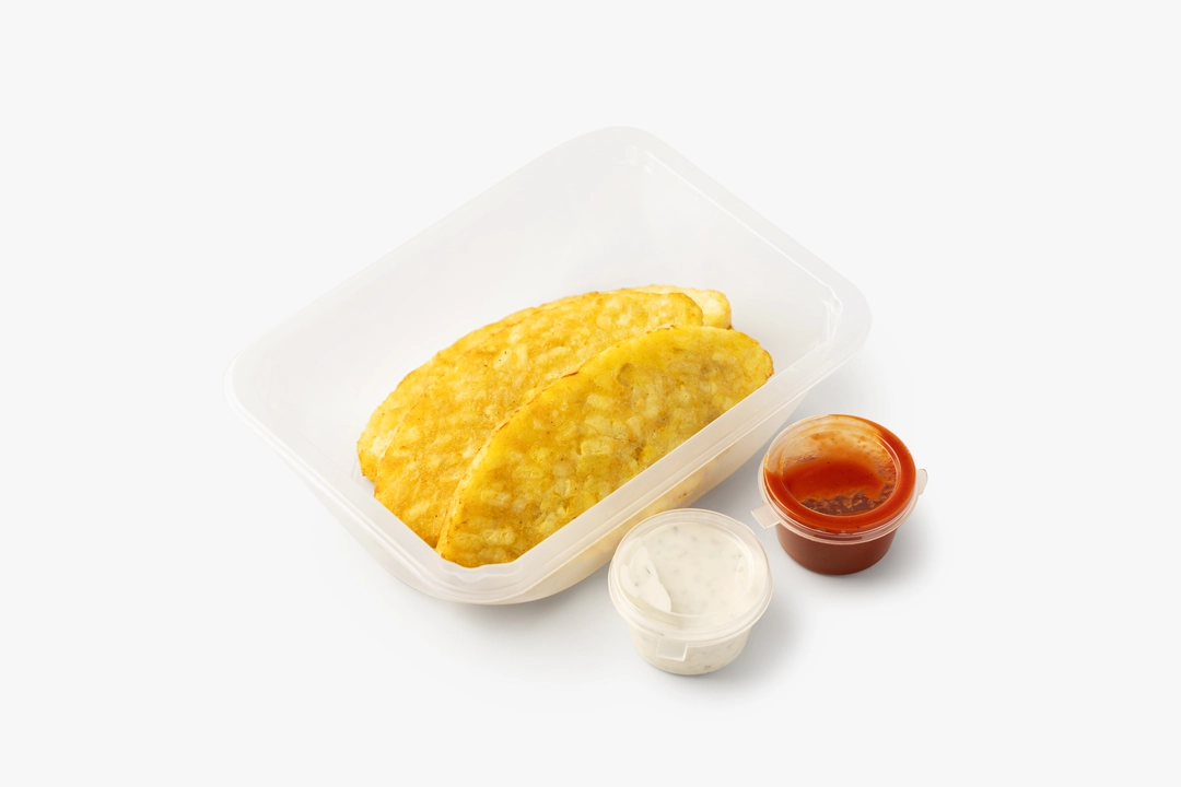 Большая порция хашбраун с томатным соусом и чесночной заправкой (4 шт) купить с бесплатной доставкой на дом всего за 2 часа из ВкусВилла. Цены, отзывы, акции.