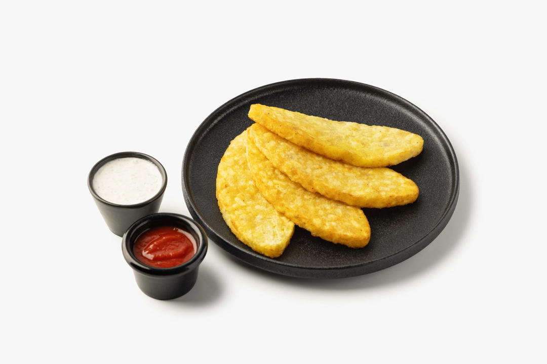 Большая порция хашбраун с томатным соусом и чесночной заправкой (4 шт)