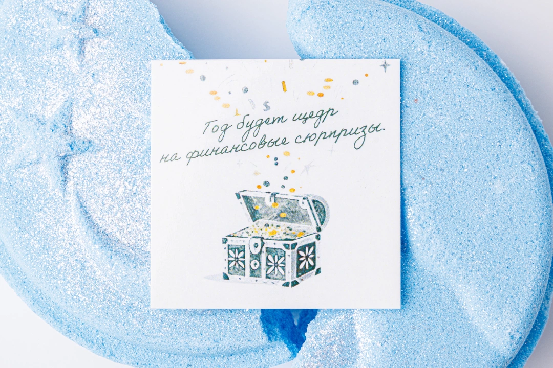 Бомбочка для ванны содержит приятное предсказание, которое добавит игровой элемент в ежедневные водные процедуры. Морская, английская и гималайская соль мягко смягчают воду, помогая расслабить мышцы после долгого дня. Натуральные масла персика, кокоса и миндаля увлажняют кожу. Просто опустите бомбочку в тёплую воду и насладитесь бодрящим ароматом с нотами цитруса и специй. После такой ванны остаётся ощущение свежести и лёгкий пряный шлейф.