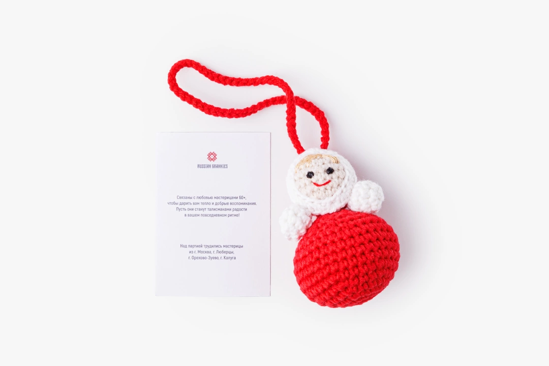 Эта вязаная неваляшка — тёплый и добрый аксессуар, который можно повесить на сумку, ключи или ёлку. Мягкая фактура и улыбчивое лицо делают её особенно уютной и трогательной — как напоминание о домашнем тепле. Каждый брелок был заботливо связан бабушками из «Рашн Греннис» и словно до сих пор хранит тепло их рук. «Рашн Греннис» — первый благотворительный маркетплейс, помогающий бабушкам и дедушкам найти покупателя для их изделий ручной работы. Приобретая этот товар, вы вносите важный вклад в проект «Добрая полка». Он создан, чтобы оказать благотворительным фондам поддержку в продаже собственной уникальной продукции.