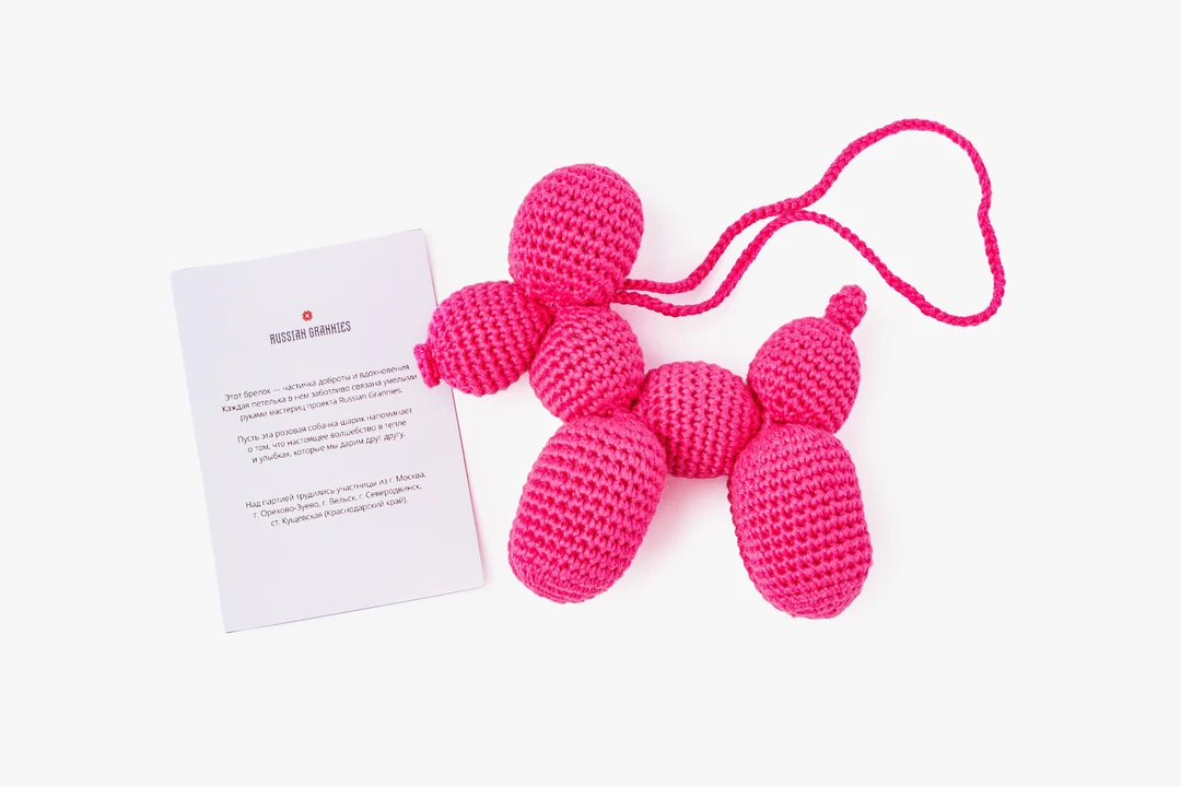 Вязаный брелок в виде милой собачки добавит уюта в повседневность. Компактный размер позволяет удобно носить его на рюкзаке или сумке, ведь он не занимает много места. Мягкая смесь из 50% хлопка и 50% акрила приятна на ощупь и хорошо держит форму, а аккуратная плотная вязка выдерживает ежедневное использование. Яркая расцветка вызывает улыбку и создаёт хорошее настроение. Брелок можно использовать не только по прямому назначению, но и как подвеску или украшение детской комнаты. Изделие связано руками мастеров старшего возраста проекта Russian Grannies. Размер брелока: длина — 10,5 см, высота — 11 см.