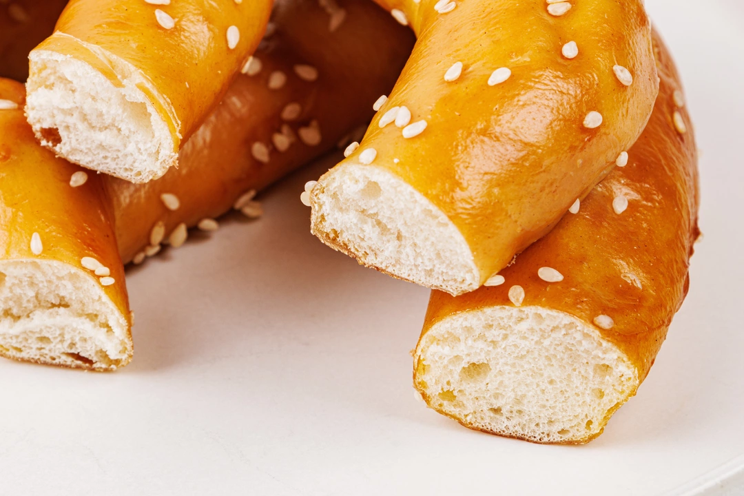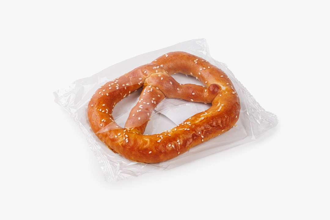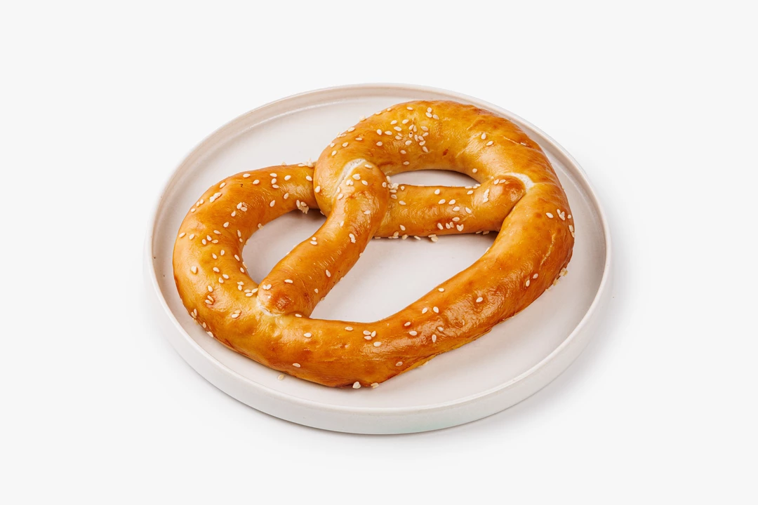 Классический брецель с нежным сливочным вкусом и золотистой корочкой. Он замешан на сливочном масле, благодаря чему тесто получается мягким и ароматным. Кунжут добавляет ореховые ноты и лёгкий хруст. Брецель хорош как дополнение к первым блюдам.