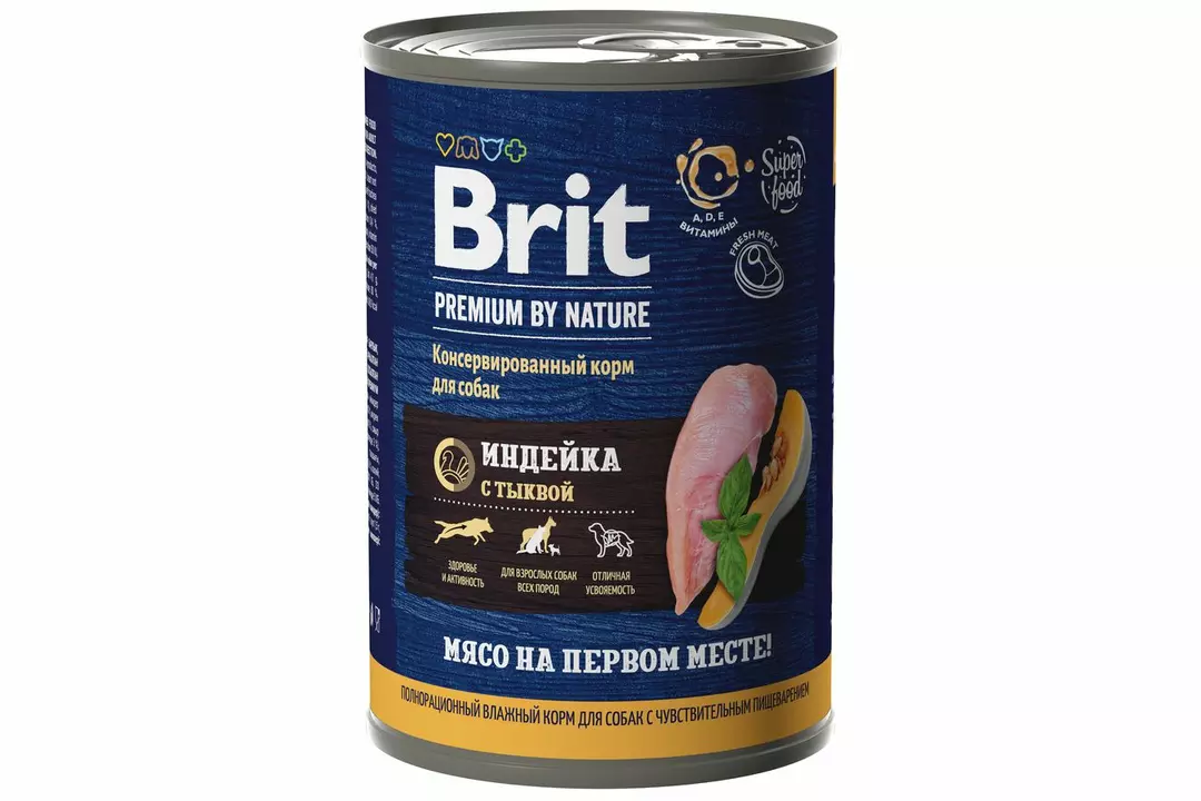 BRIT Premium by Nature Dog Adult Корм влаж.индейка с тыквой д/собак с чувств.пищевар.конс.410г купить с бесплатной доставкой на дом всего за 2 часа из ВкусВилла. Цены, отзывы, акции.