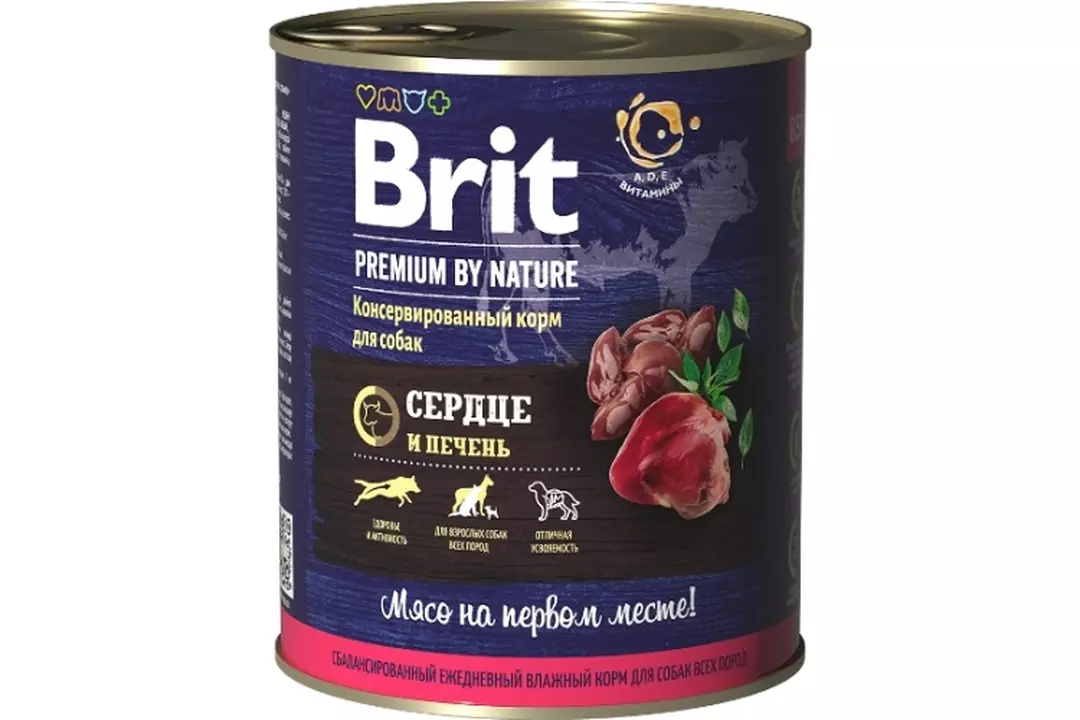 BRIT Premium by Nature Dog Adult Корм влаж.сердце и печень д/собак конс.850г / Супермаркет