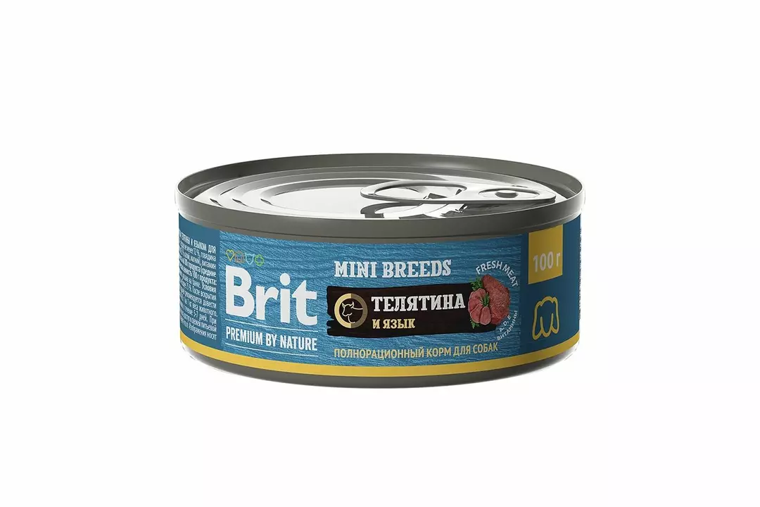 BRIT Premium by Nature Dog Adult Mini Корм влаж.телятина с языком д/собак мелких пород конс.100г / Супермаркет