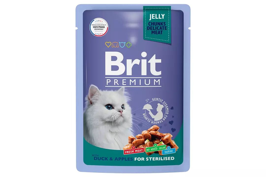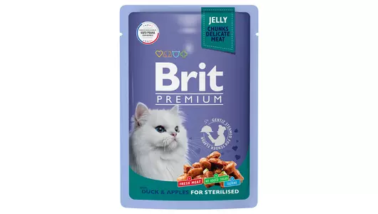 BRIT Premium Cat Sterilised Корм влаж.утка с яблоками в желе д/стерилизованных кошек пауч 85г / Супермаркет