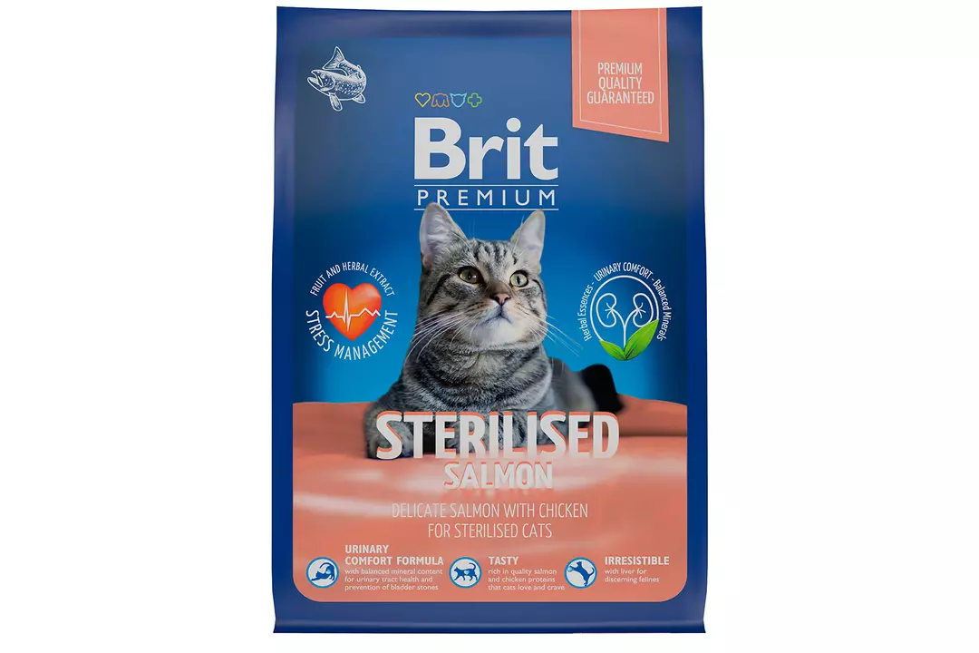 BRIT Premium Cat Sterilised Salmon&Chicken Корм сух.лосось,курица д/стерил.кошек 400г купить с бесплатной доставкой на дом всего за 2 часа из ВкусВилла. Также можно оформить онлайн-заявку на самовывоз и забрать собранный заказ через 30 минут. Цены, отзывы о товарах от наших покупателей, действующие акции на официальном сайте ВкусВилл.