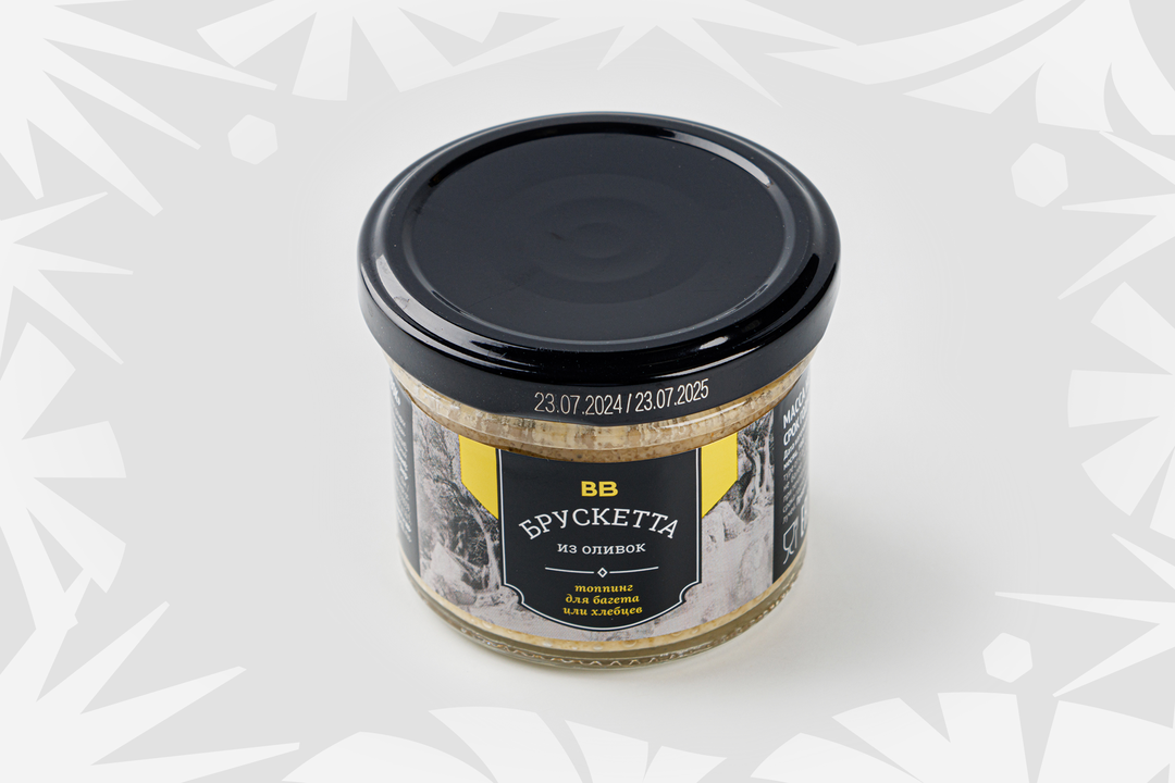 Гурманская закуска из сочных зелёных оливок, перетёртых с орехами кешью и дополненных специями. У брускетты яркий солоновато-пряный вкус и терпкий аромат, моментально пробуждающий аппетит. Эта «намазка» превосходно сочетается с поджаренным багетом, а также подходит для добавления в соусы, пасту и пиццу.