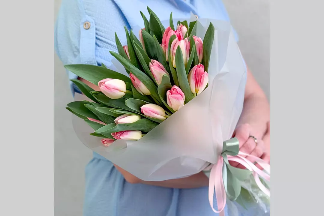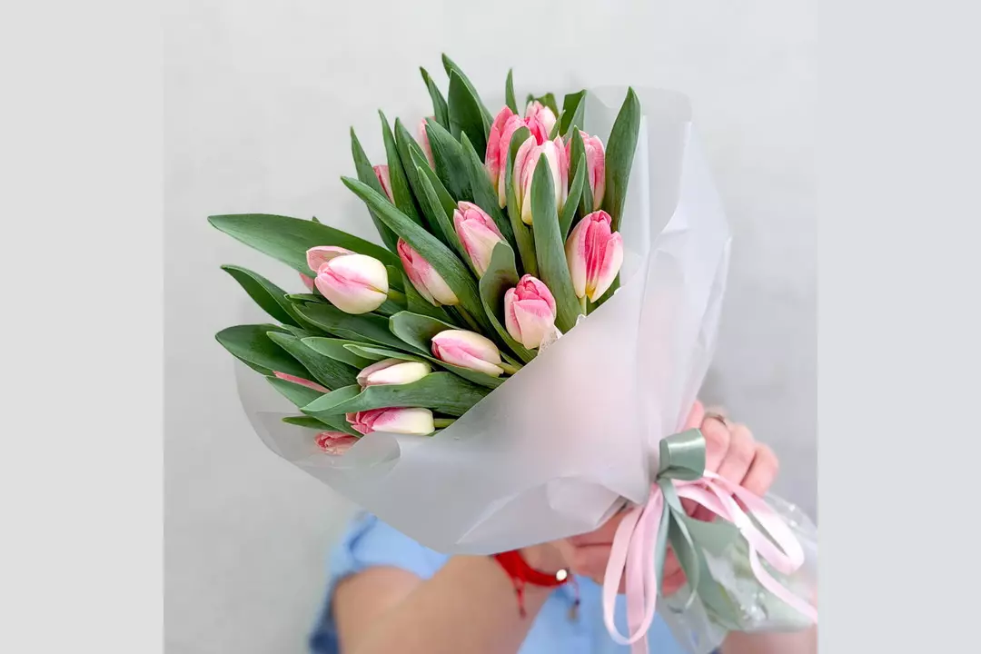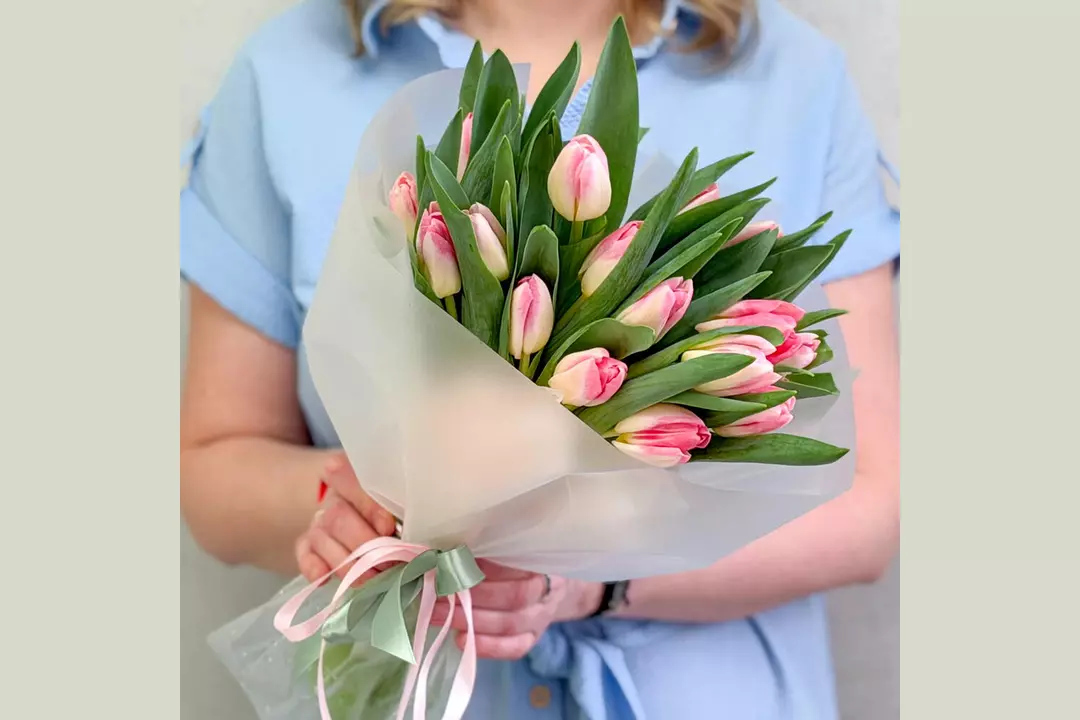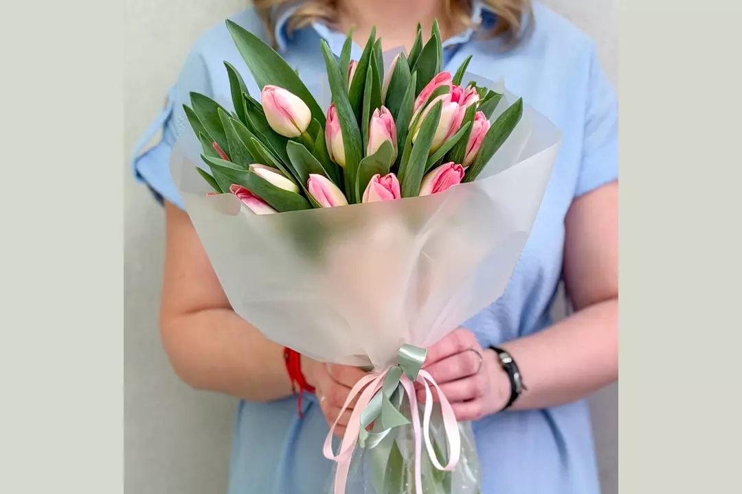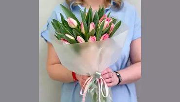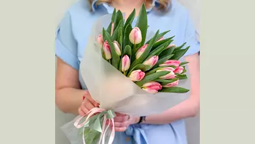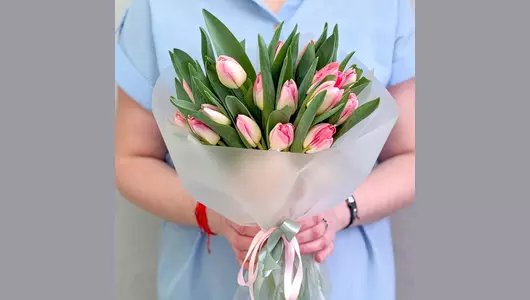 Нежность, которая говорит без слов 🩷 Изысканный букет из свежих розово-белых тюльпанов — это про чистые чувства, искренние эмоции и утончённый вкус. Плотные бутоны с сочной зеленью красиво раскрываются с каждым днём, создавая ощущение живой, дышащей весны в руках. Свежие цветы, аккуратная сборка и эстетика минимализма — тот самый букет, который выглядит дорого и чувствуется искренне. Подарите эмоции, которые распускаются вместе с каждым лепестком. 🌷 Состав: Тюльпан - 25 шт. Лента атласная - 2 шт. Упаковка дизайнерская - 1 шт.