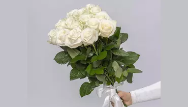 Букет из 15 белых роз Россия (60см) под ленту