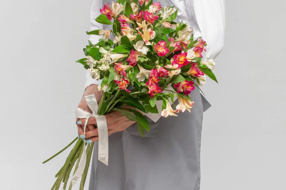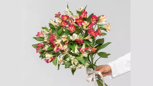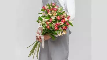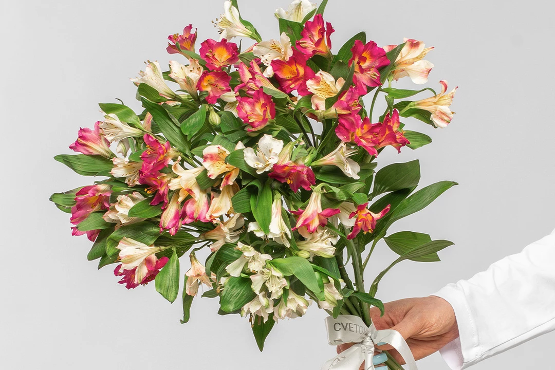 Состав: альстромерия 15 шт., лента атласная 1 шт.