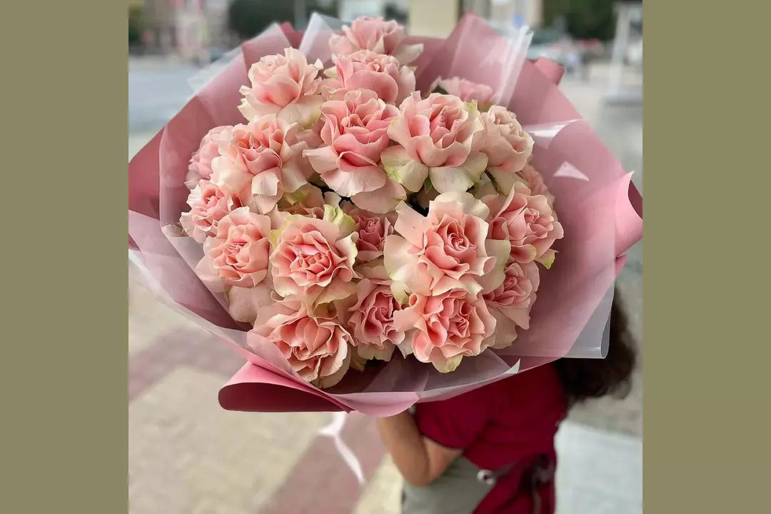 Состав Роза - 25 шт. Атласная лента - 4 шт. Упаковка дизайнерская - 5 шт. Размер Ширина - 45 см Высота - 55 см Букет из 25 французских розовых роз в матовой плёнке — это элегантная композиция, сочетающая изысканность вывернутых лепестков с лаконичной упаковкой. Французские розы, созданные путём ручной обработки лепестков, придают букету объём и пышность, а матовая плёнка подчёркивает их нежность.
