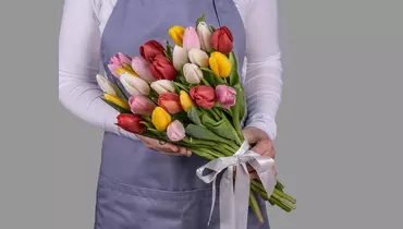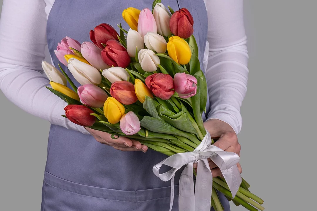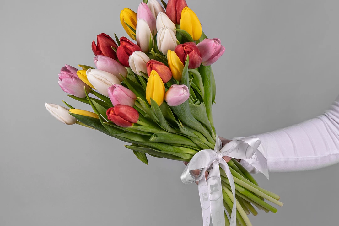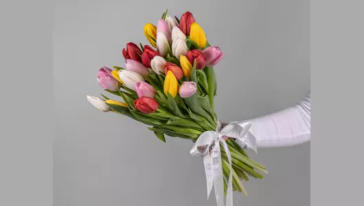 Состав: тюльпан стандарт 25 шт., лента атласная 1 шт.