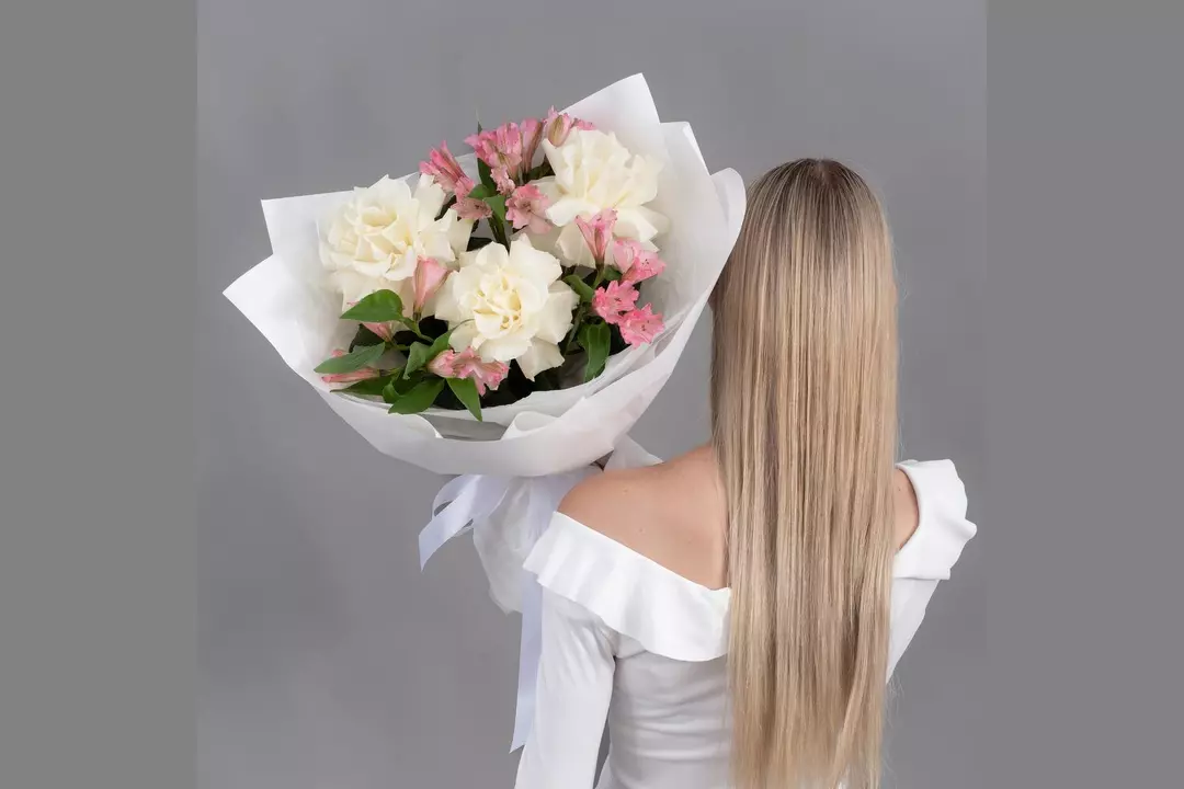 Состав Альстромерия - 4 шт. Упаковка дизайнерская - 5 шт. Французская роза - 3 шт. Размер Ширина - 29 см Высота - 55 см Букет из 3 белых французских роз и 4 розовых альстромерий — это элегантная композиция, сочетающая нежность и изысканность. Французские розы придают букету аристократичность, а альстромерии добавляют лёгкость и объём.