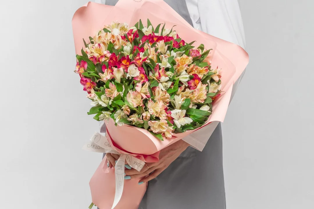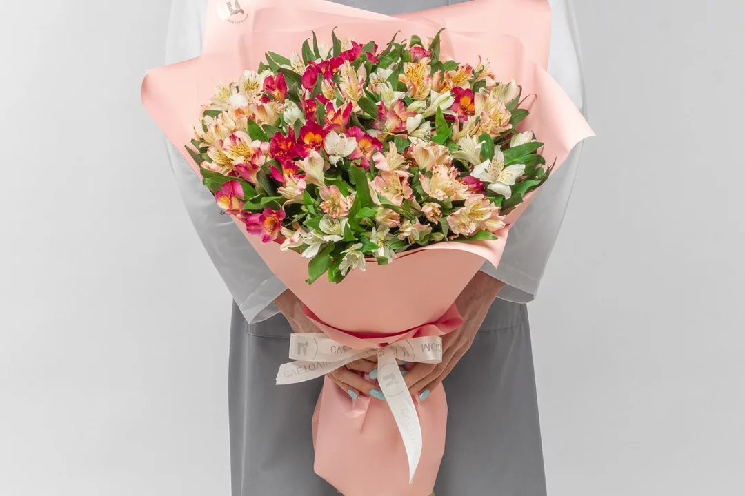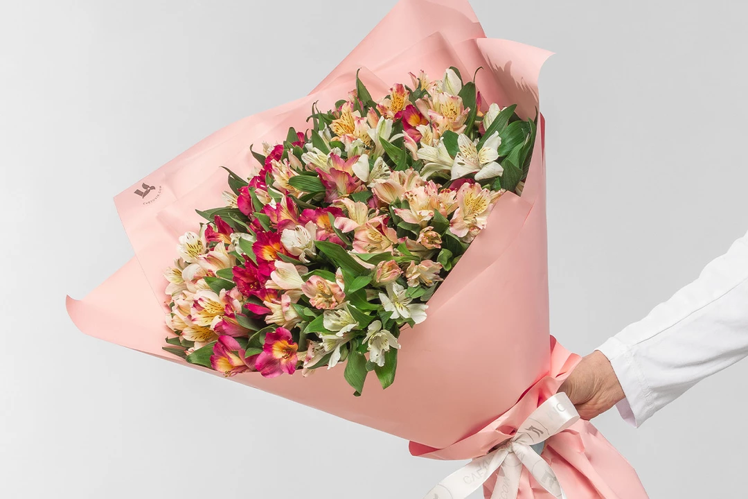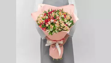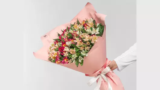 Состав: альстромерия 35 шт., лента атласная 1 шт., оформление