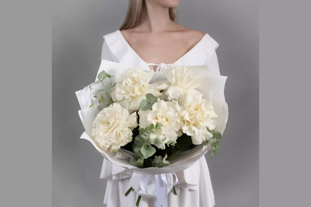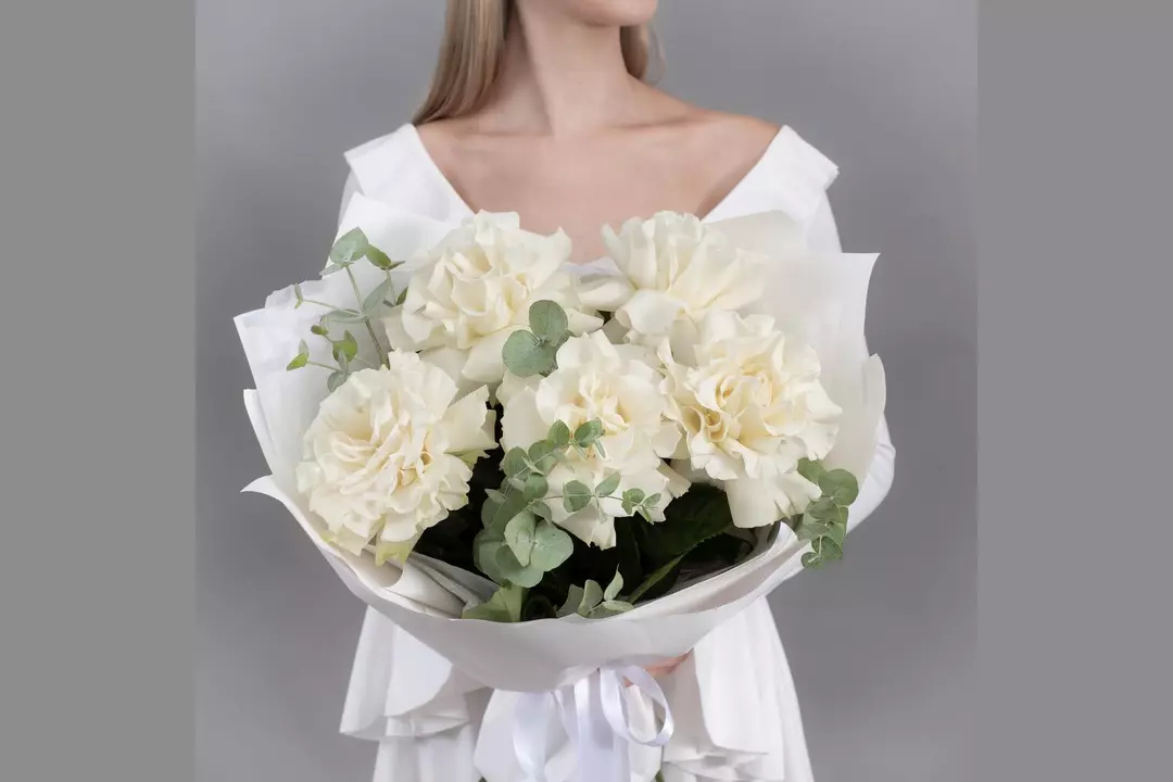 Букет из 5 белых, французских роз с эвкалиптом FMART by flowwow